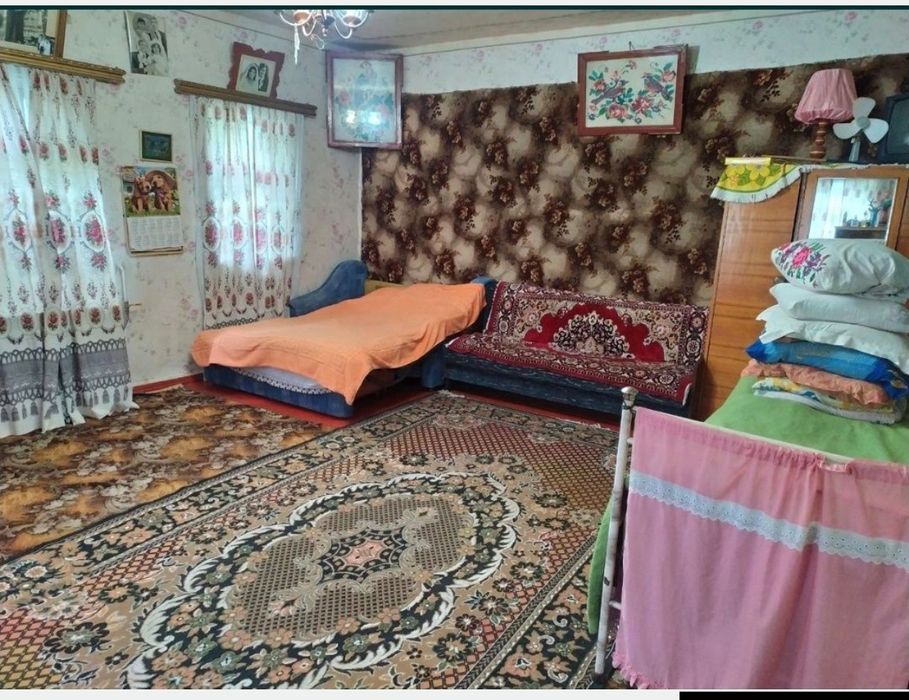 Будинок з газом та меблями; Продається будинок, повністю готовий для проживання, меблі, спальня, кухня, газ, колодиць, великий город, 13 км від міста. Залізний паркан і дах, літня кухня, підвал, сарай, великий сад.