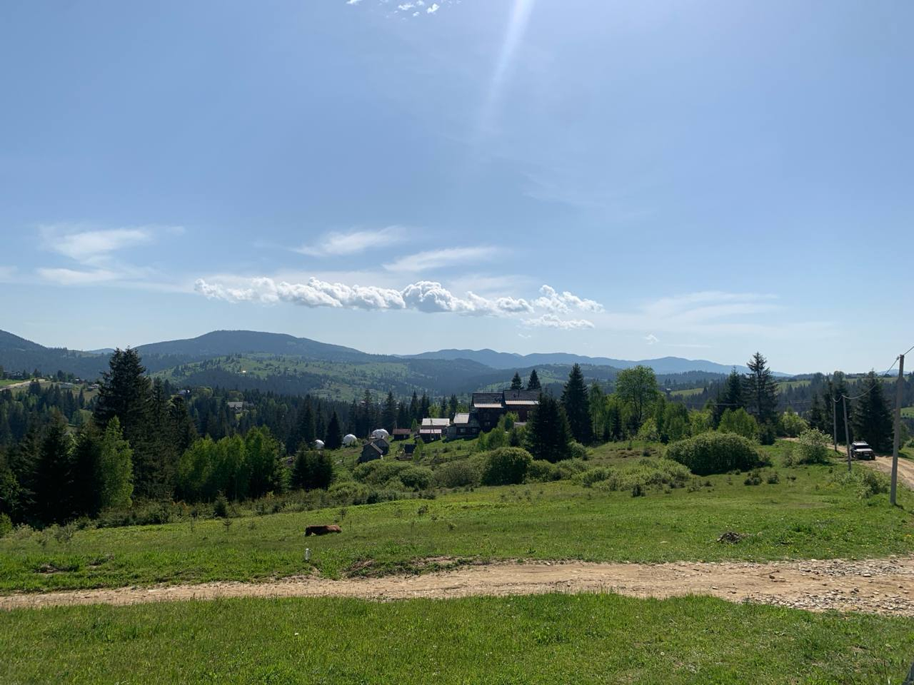 До бази Буковель всього 8 км по ідеальній трасі. Під'їзд до ділянки ґрунтовий, але комфортний для авто. Взимку дорогу очищають.