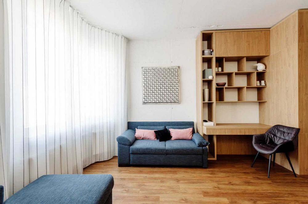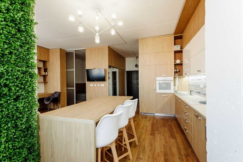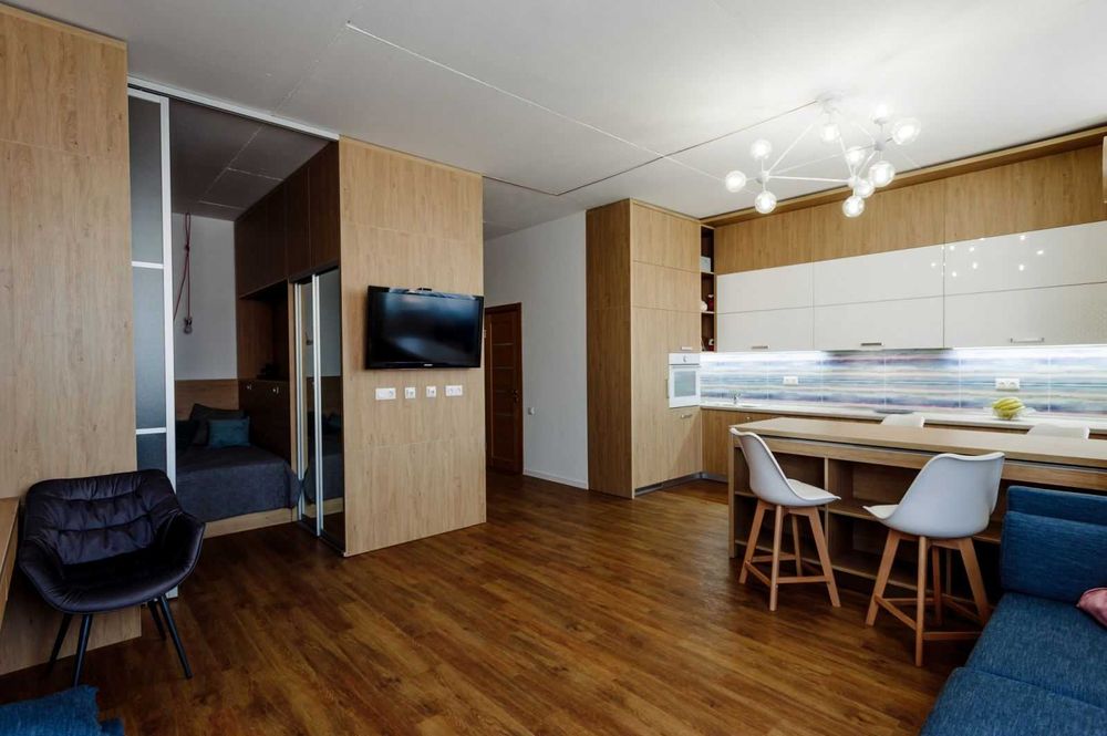 Комфорт та зручність проживання і праці. Авторський дизайн, багато місця для збереження, відокремлений спальний простір, робоче місце, велика кухня, надійна техніка.