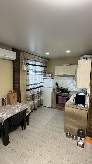 Утеплена , що є перевагою в прохолодну погоду. Санвузол сумісний. Є прилади для охорони. В квартирі залишається кондиціонер,холодильник,бойлер,духофа шафа та поверхня для приготування їжі та всі меблі.