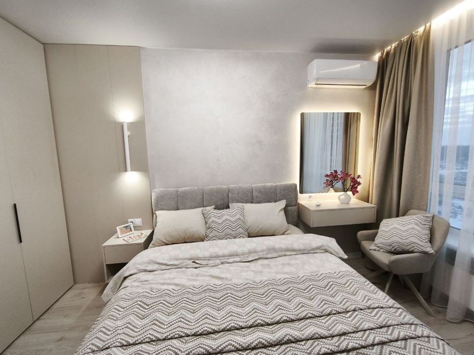 Кімната №1: Ліжко 200*160 з ортопедичним матрацом, шафа для речей, кондиціонер, точкове освітлення + різні підсвітки.