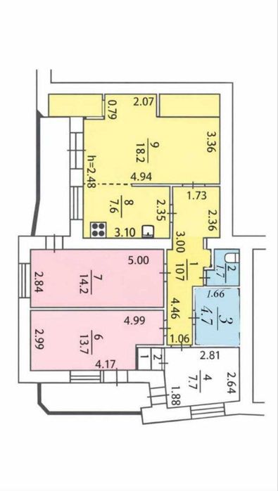 • Висота стель: 2,48 м