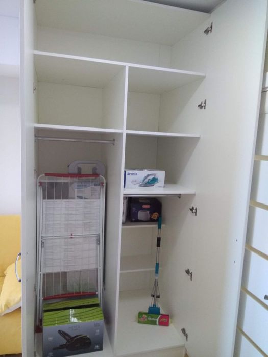 Повний набір побутової техніки: бойлер, витяжка, духовка, склокерамічна плита, холодильник, електрочайник, пральна машина, рушникосушарка, пилосос, праска.