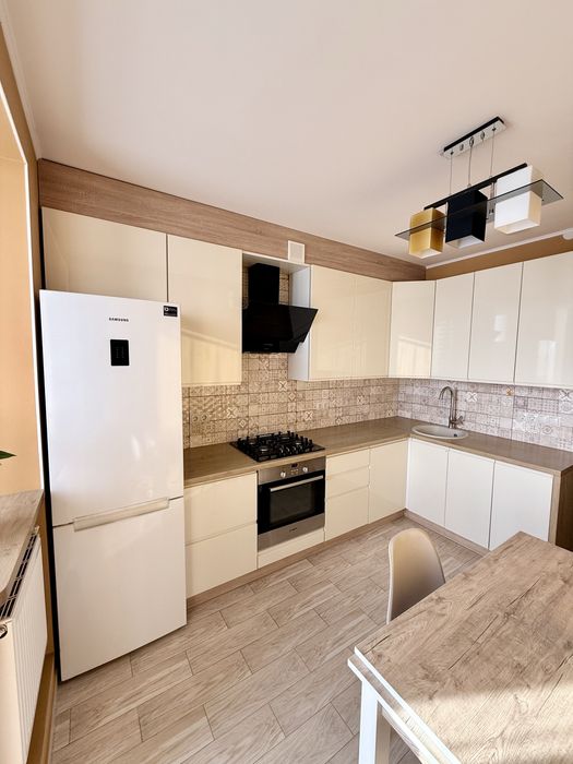 Кухня обладнана:газова плита,духовка,пральна машина.Стіл розкладається.