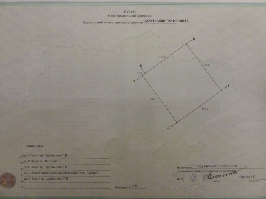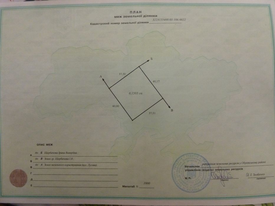 | Земельна ділянка: |