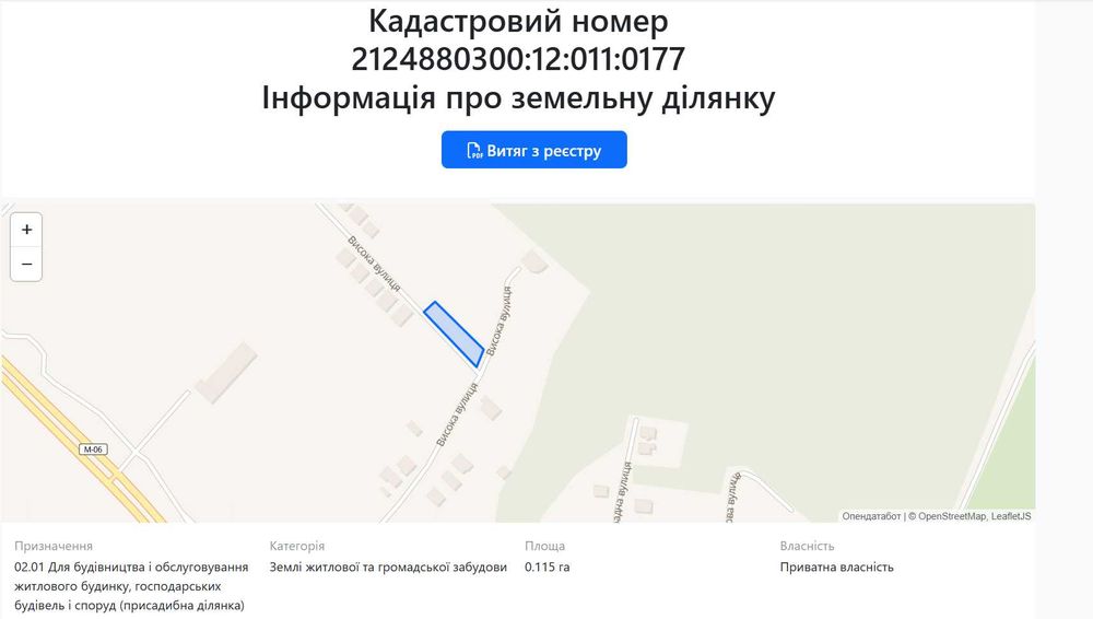 | Земельна ділянка: |