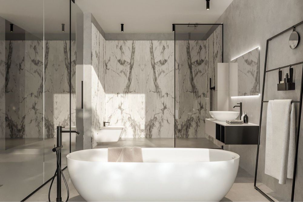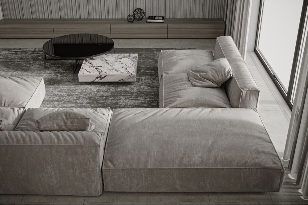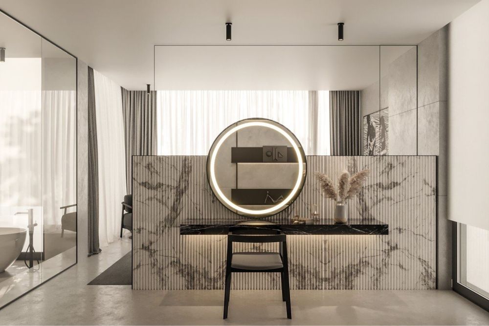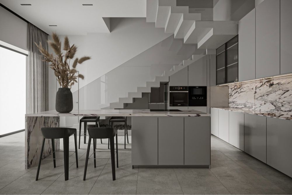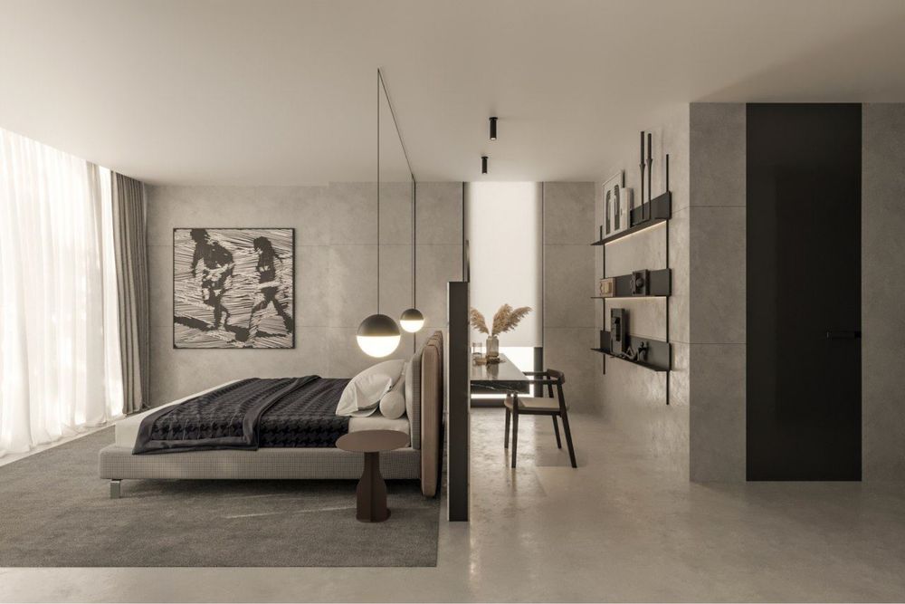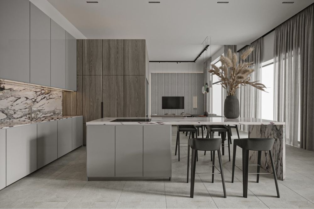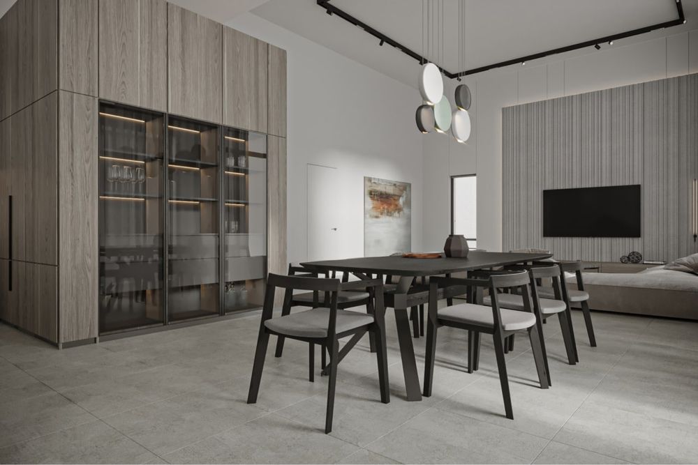• Простора вітальня-студія-кухня 90 м² з висотою стель 4,5 м