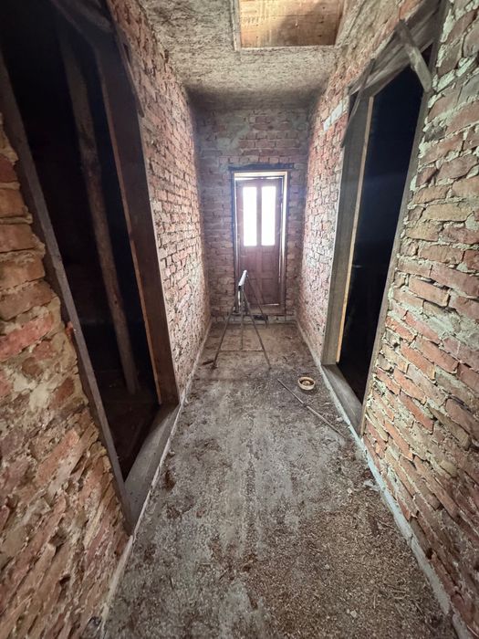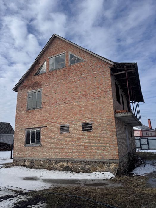 Продам будинок 2-х поверховий цегляний; Продається двоповерховий цегляний будинок загальною площею 124 м². Будинок міцний, з хорошою коробкою, вже зроблене внутрішнє планування. Є 6 житлових кімнат, а також передбачені приміщення під кухню, ванну та інші господарські кімнати. Стан — незавершене будівництво: стіни зведені, перегородки є, але потрібен повний внутрішній ремонт, тому можна зробити все на свій смак. Встановлено забор від вулиці. У двір заведена вода, електрику та газ можна без проблем підключити. Разом із будинком продається земельна ділянка (город), а також на території є погріб. Хороший варіант для тих, хто шукає просторий будинок і хоче облаштувати його під себе. За детальною інформацією звертайтесь. По ціні можливий розумний торг; Також цікавить обмін на автомобіль