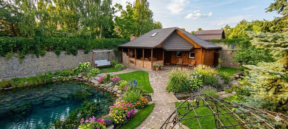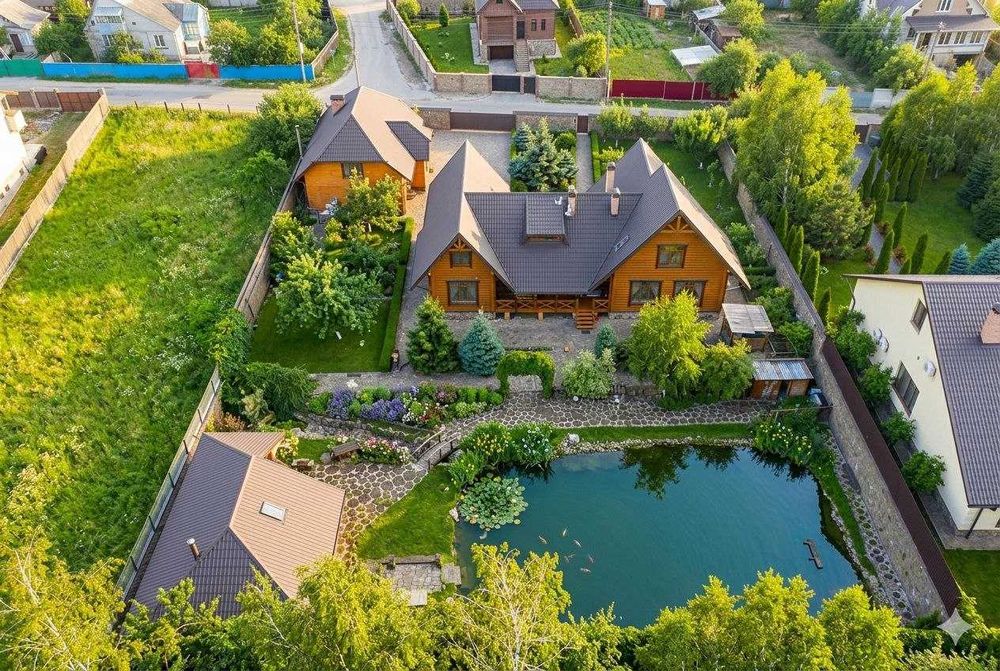 Общая площадь 380 м2. Гостьевой дом 120 м2. Участок 24 сотки. На участке своё зарыбленное озеро.