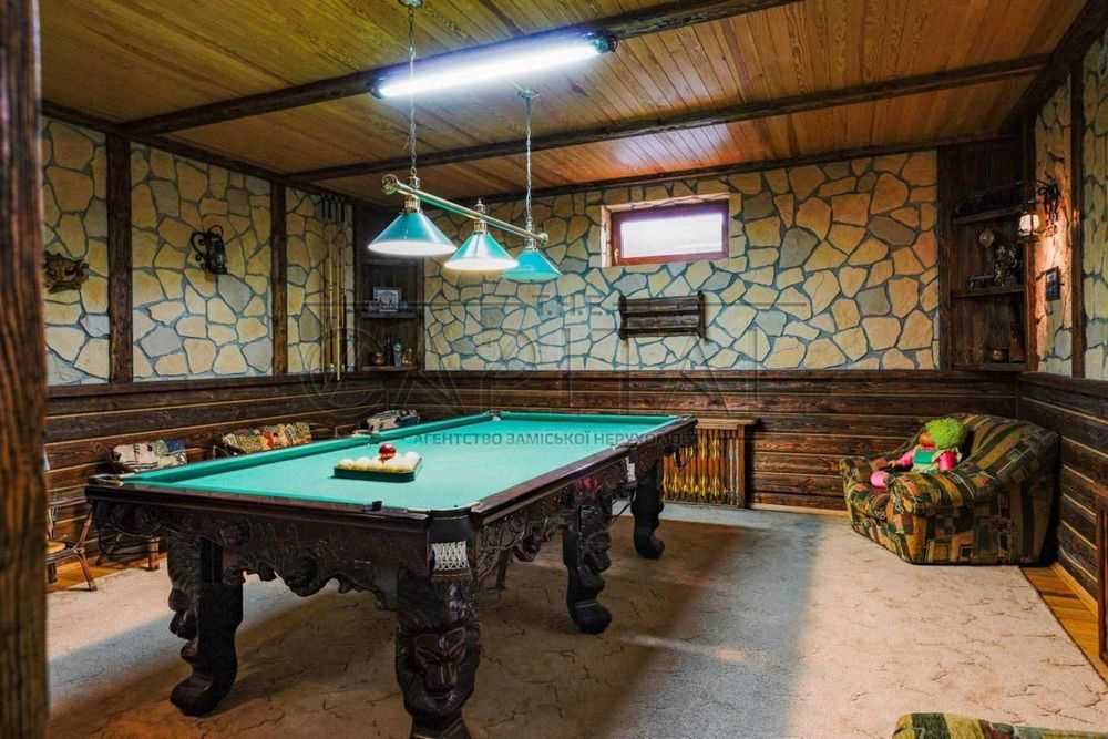 7 комнат, кухня-столова, тренажерна, більярдна, пральня, погріб. Гараж на 3 машины, сад, маленький огород.