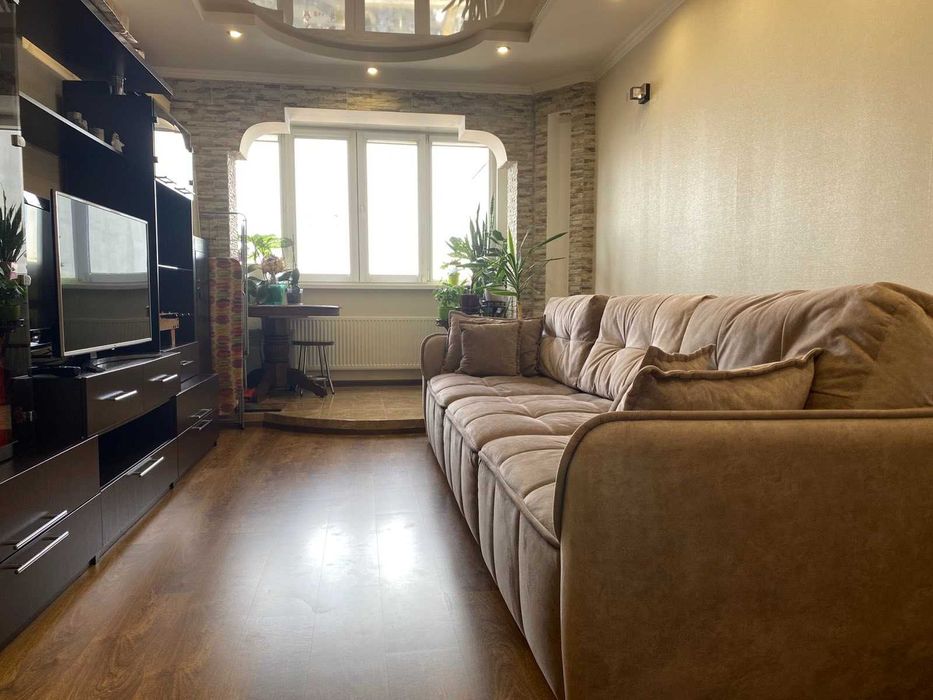 Продаж мебльованої квартири на Митниці; Продається простора та світла 3-х кімнатка квартира на Митниці по вул. Припортова, 14. У квартирі залишається повністю все: холодильник, варильна поверхня, духова шафа, мікрохвильова піч, дерев'яні стільці та столи, дерев'яна стінка у дитячій кімнаті, кондиціонер, бойлер, пральна машина, телевізори, шафи, ліжка, диван. У квартирі установлена охорона. Два балкони, з яких один закритий, медльований місткими шафами, інший з'єднаний із кімнатою. Квартира дуже тепла, не вуглова. Біля будинку садок, школа, кафе, зупинка громаднього транспорту, фітнес клуб Спорт лайф, чудова набережна.