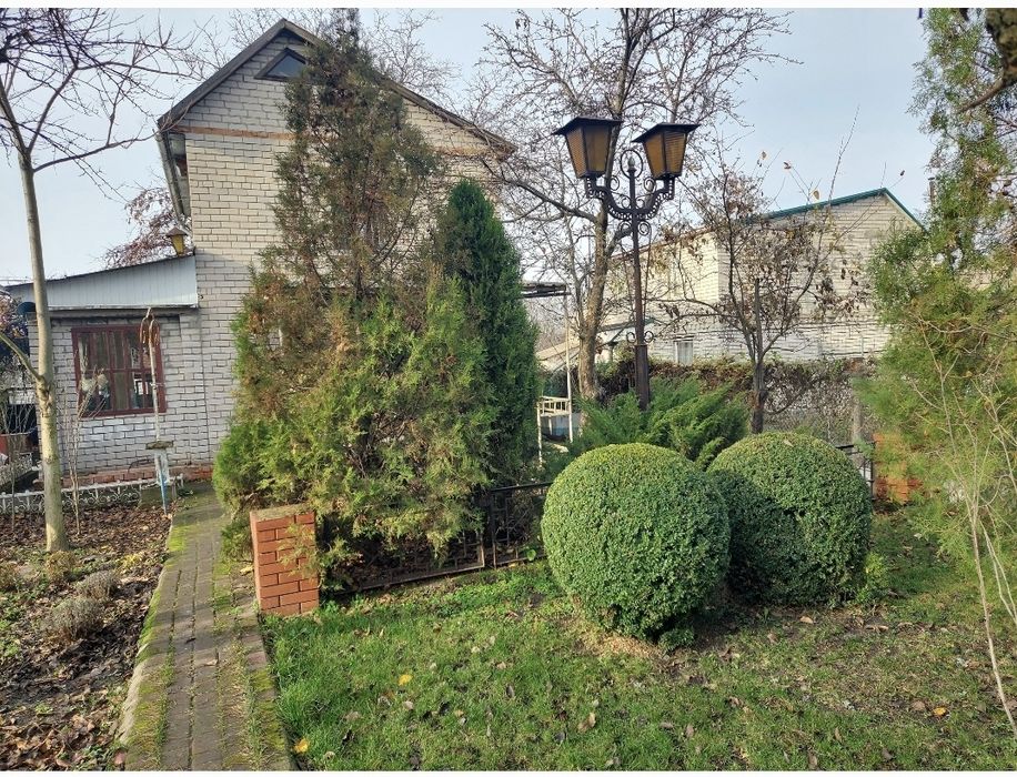 Продам будинок дачу Дніпро Придніпровськ Любимівка; Продам будинок з можливістю зимового проживання (Дніпро, Придніпровськ, Любимівка). До міста 12 км. Дача розташована за с.Любимівка та ж/м Придніпровськ. Будинок цегляний двоповерховий, бетонні перекриття. Євровікна, встановлені і решітки, і сучасні ролети. Перший поверх: сучасна кухня з меблями, холодильником Miele, мікрохвильовою пічкою Samsung (керамічне покриття), окрема їдальня з оригінальним світильником-колесом-штурвалом (ручна робота), кімната з каміном. Другий поверх: дві кімнати з сучасними ліжками, в одній спальні - кондіціонер спліт зима-літо. Цокольний поверх - гараж під усім будинком з підвалом. Є вимощена європлиткою площадка на два автомобілі, над усією площадкою арка, увита виноградом, яка влітку дає затінок та прохолоду, а восени - багато смачного винограду. Будинок має свіжий ремонт. Вода на ділянці, цілорічно.