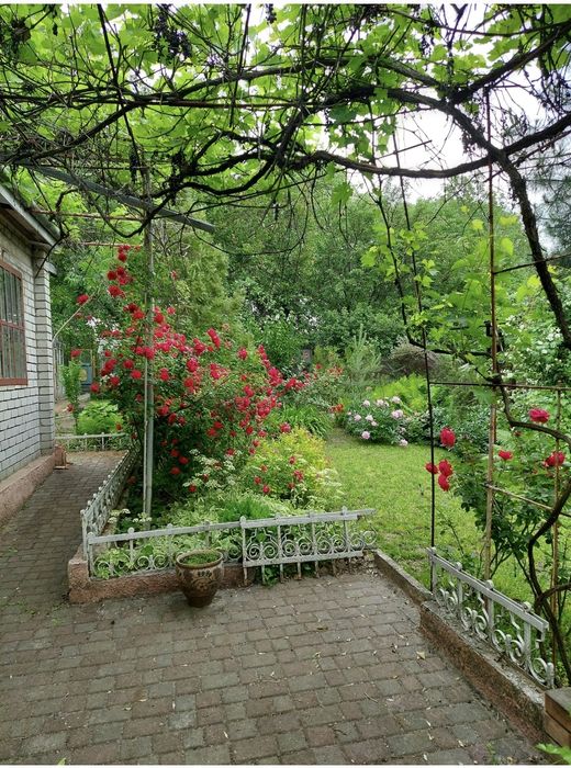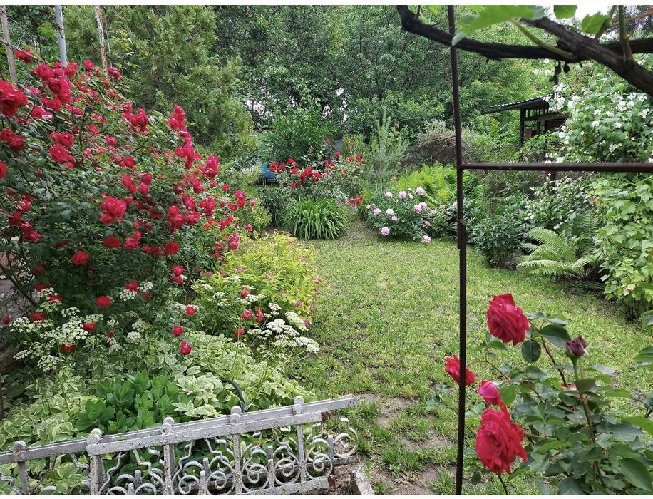 На ділянці дорослий ландшафтний дизайн, ковані елементи, сад. Хозприміщення окремо.