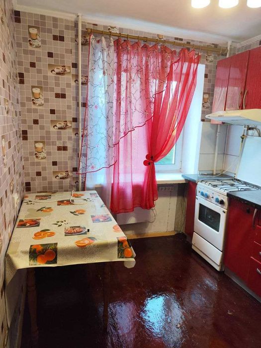 Оренда 1 кімн.квартири; Здається 1-к квартира з меблями, яка ідеально підійде для однієї людини або молодої пари. Цегляний будинок. Кухня обладнана газовою плитою, холодильником та обіднім столом.