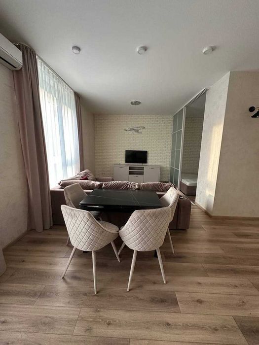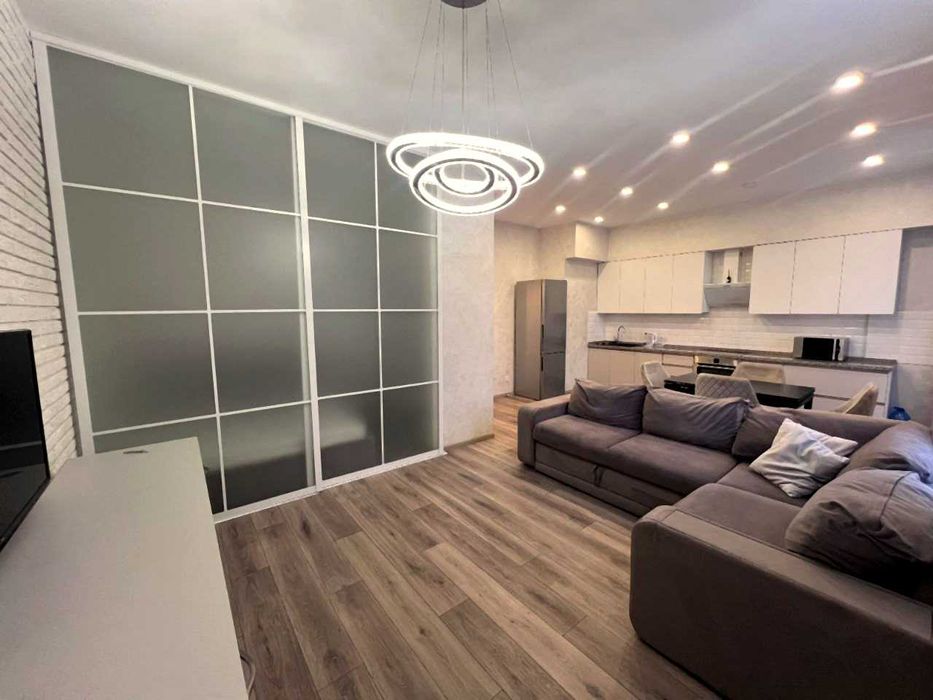 Простора студія з кухонною зоною 35 м², загальна площа 52 м², сучасний ремонт, ідеальний стан, квартира повністю готова до заселення.