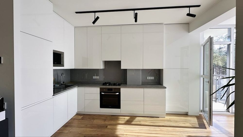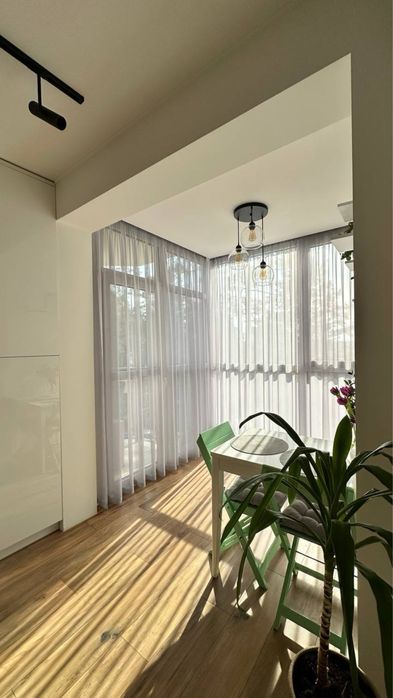 Дизайнерський ремонт, кухня-студія, гардеробна, панорамні вікна на ліс. Маленький балкон. Закритий двір.