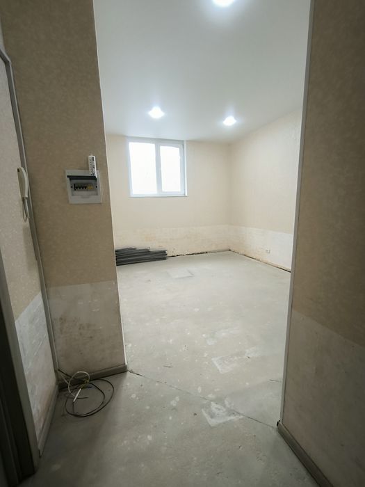 Зроблена електрика, натяжні стелі, решітки на вікнах, санвузол. Треба доробити підлогу і закінчити стіни.