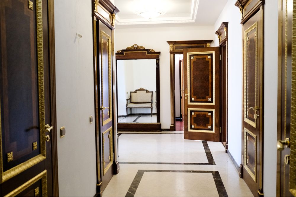 Дизайн: Ексклюзивний інтерʼєр в стилі сучасної класики з елементами модерну, створює атмосферу розкоші та комфорту. Використані тільки натуральні матеріали: мармур, масив ясена, дуба та червоного дерева, керамограніт.