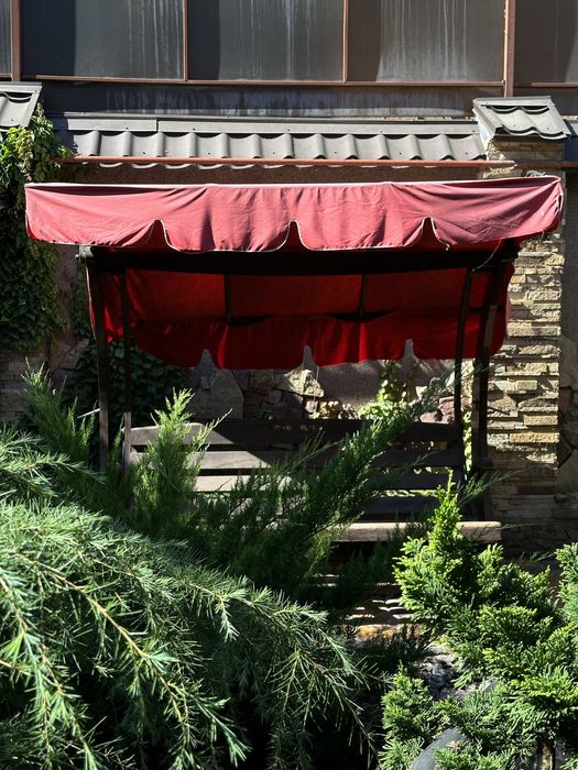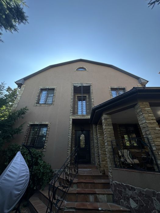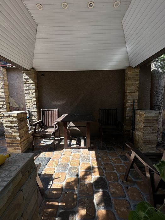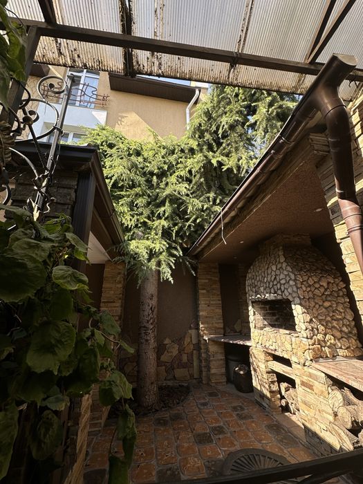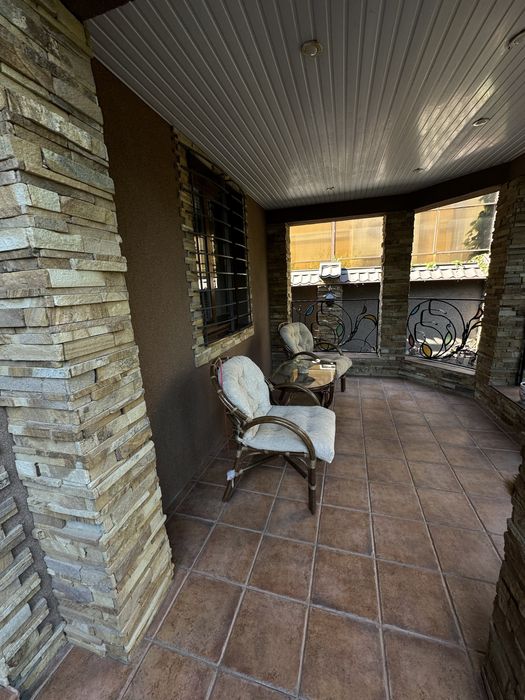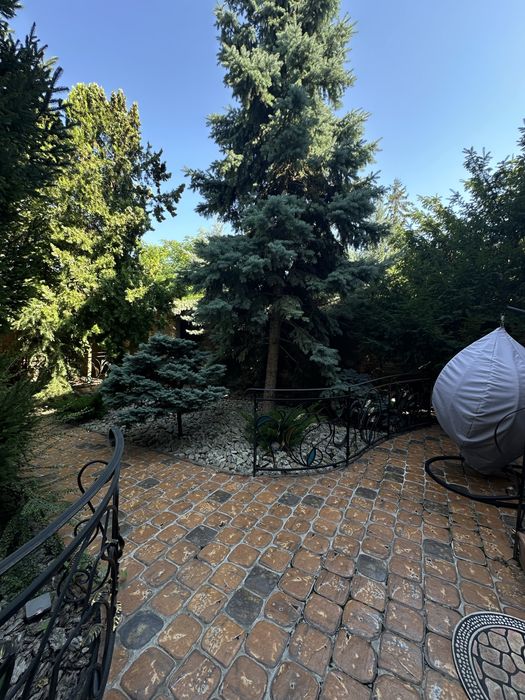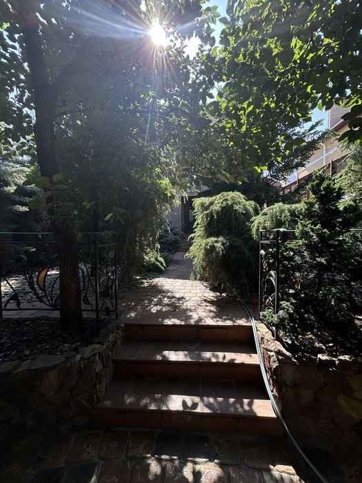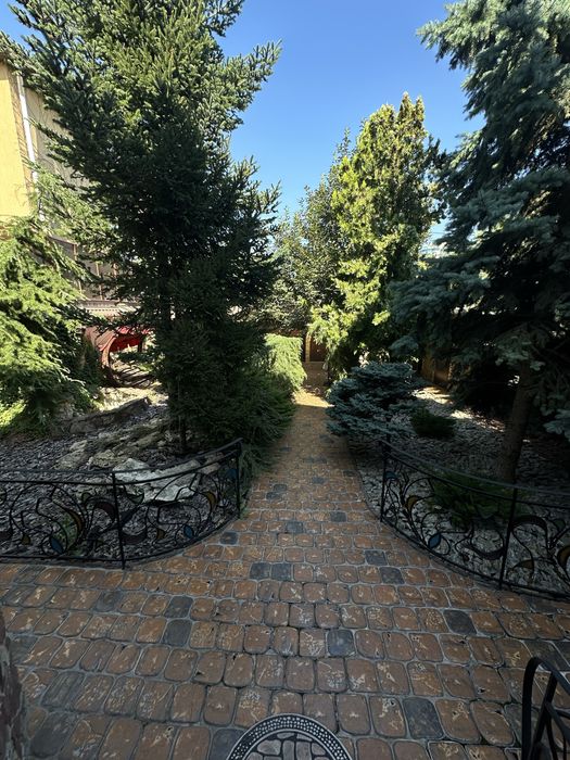 Участок правильной формы, крыша металлочерепица, во дворе капитальная генераторная, гараж на 1 машину и крытое место во дворе под 1 машину, барбекю и зона отдыха, фонтан, красивый ландшафтный дизайн, автоматический полив, деревья: елки, хурма, фундук.