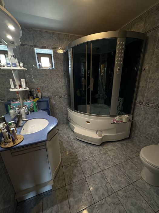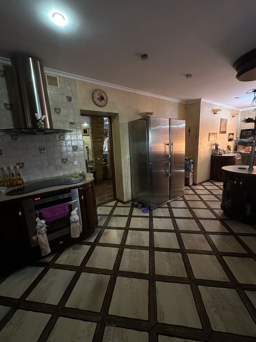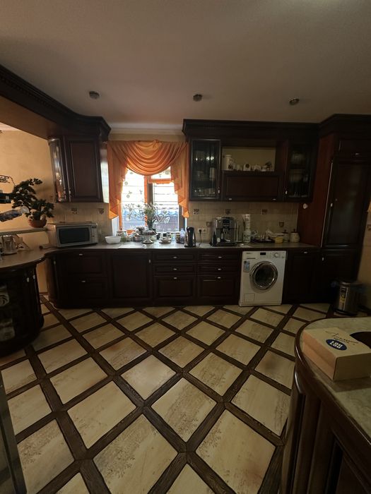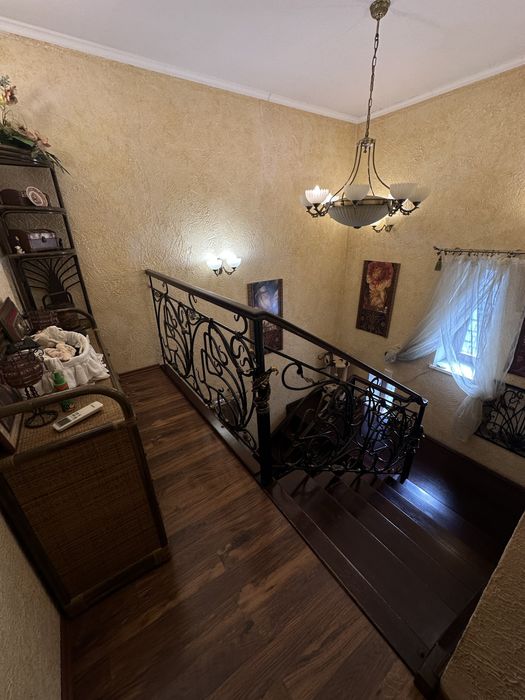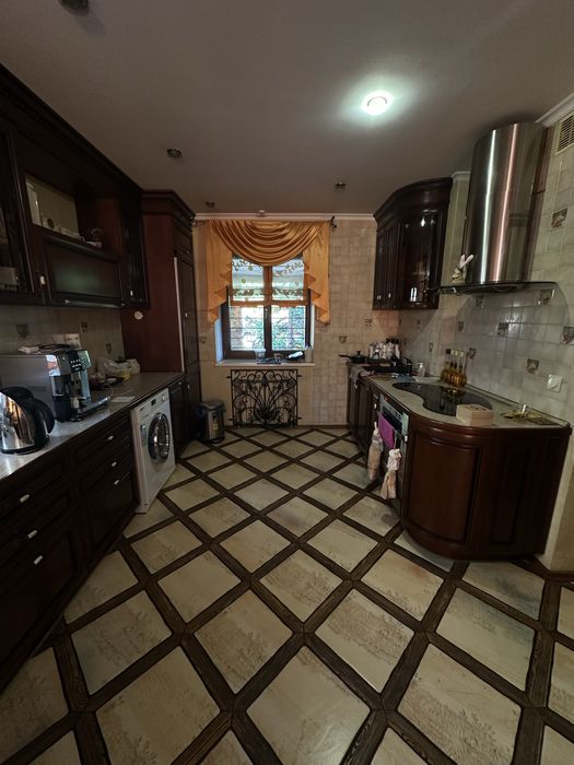 1 этаж, веранда, кухня-столовая с теплыми полами, дорогая техника Teka, стиралка с сушкой Miele, 2 холодильника Liebherr- двойной и встроенный Ariston, гостиная, шкаф-купе, эксклюзивная ковка, дубовые стеклопакеты, дубовые двери, дубовая лестница, туалет/душевая кабинка.
