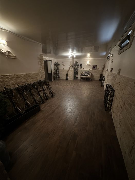 Подвал. 2 комнаты гардеробные, комната под спортзал, комната вспомогательная : автополив, двухконтурный котел.