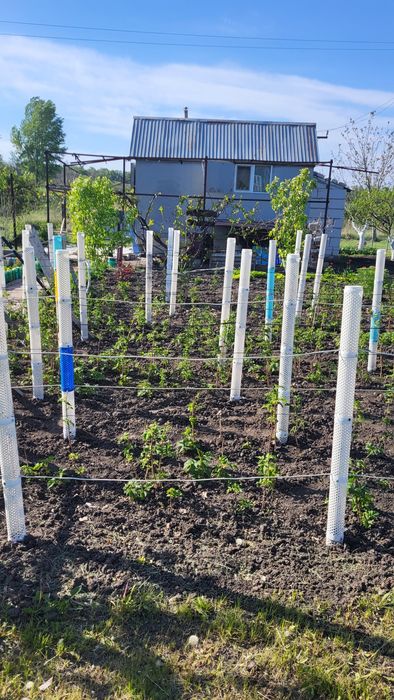 Участок огороджений сіткою рабіца. На участку молодий сад, почав плодоносить. Абрикоси, вишні, черешні, груші, персики, сливи, яблуні, виноград, інжир, оріхи, полуниці, малина, смородина, агрус, рози.