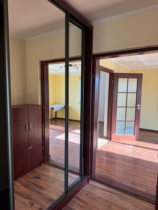 Площа пів будинку 60 метрів квадратних , дві кімнати , частково меблі .
