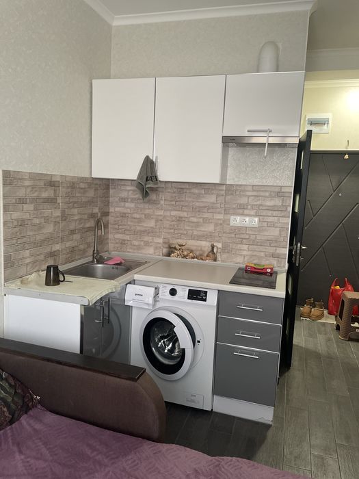 Удобства: Свой санузел (душ, туалет) и кухонная зона внутри студии.