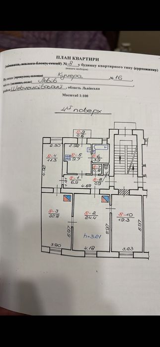 Шевченківський; Продаж квартири Львів; Продаж чотирьох кімнатної квартири в Шевченківському районі, останній поверх дві квартири на поверсі. Чотири кімнати , кухня, санвузол роздільний, балкон з кухні в тихе подвірʼя. Поряд школа, Університет, ринок, Сімейна Амбулаторія, 5-7 хвилин ходьби до центру , хороша транспортна розвʼязка