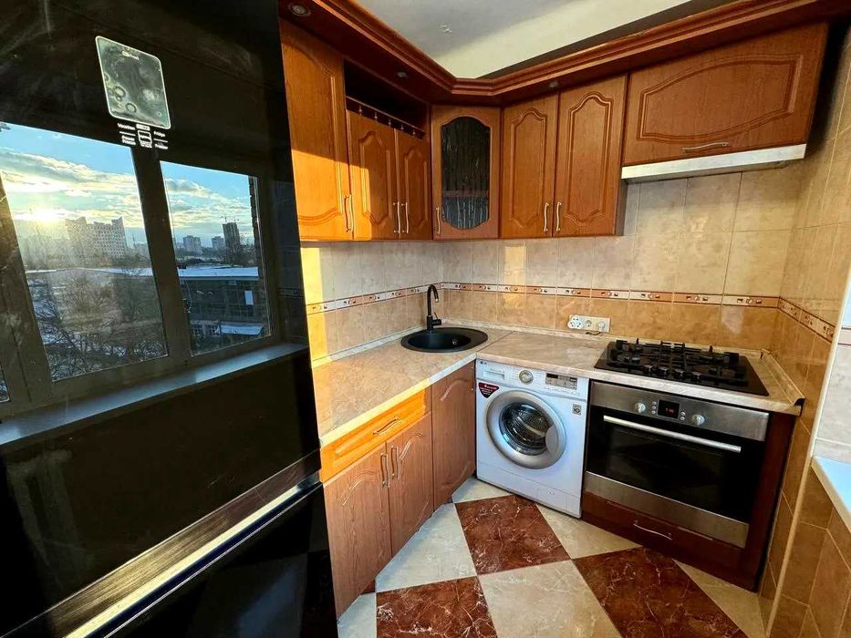 -Кухня вбудована, є бойлер, холодильник, мікрохвильова піч, пральна машина