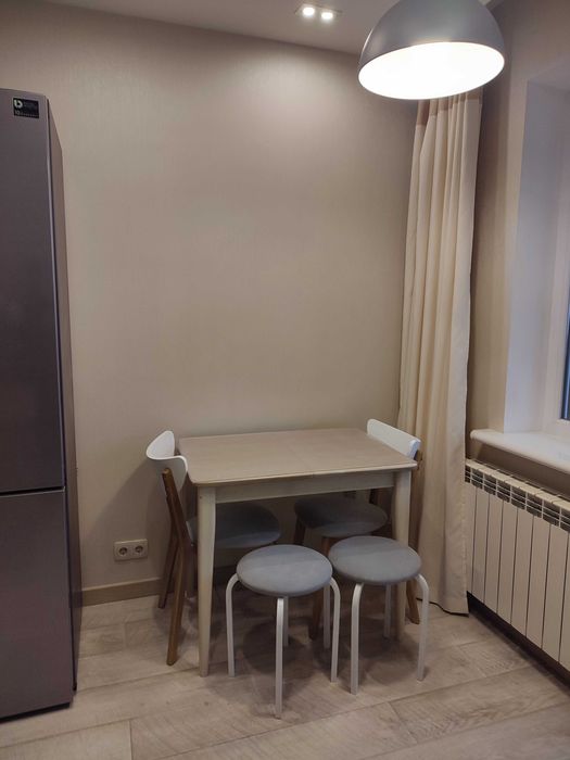Дарницький; Довгострокова оренда 1кім квартири вул Гришка буд 10; Вул Михайла Гришка, буд. 10., 9 поверх 18 поверхового будинку. Загальна площа 38,7 м кв. кімната 17,8 кв. м, кухня 8,4 кв. м, ванна кімната 2,6 кв м, санвузол 1,0 кв м, коридор 4,8 кв. м, дві лоджії 8,2 кв м. Матеріал стін та перекриття- залізобетон. В квартирі є шафа-купе і три вбудовані шафи, ліжко, стіл кухонний, стіл комп’ютерний, крісло, стільці, кухонна мебель, холодильник, пральна машина, два кондиціонера, вай фай, бойлер. В будинку є альтернативні джерела електроенергії. При вимкнутому світлі працює ліфт і опалення. До метро 5 хв. пішки. Є поруч ТРЦ, супермаркети, Епіцентр, Метро, ресторани, дитячі майданчики, школи, дит садочки