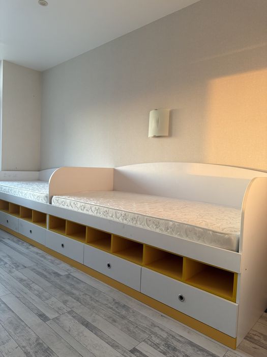 Дві окремі кімнати-спальня та дитяча, вітальня гостьова та закрита зручна кухня. Продумане планування, гардероб, засклений балкон. Відеоспостереження