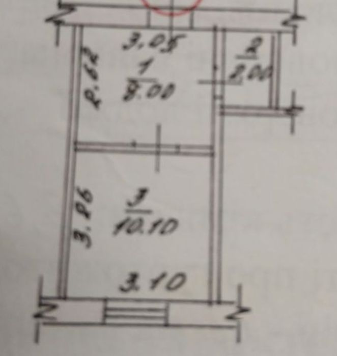 20,1 м² (жилая комната -10 м.кв., кухня- 8 м.кв. санузел 2 м²), планировка согласно техпаспорту. Южная сторона — в квартире светло и тепло. В квартиру подведена вода.