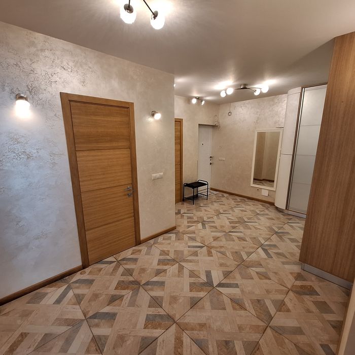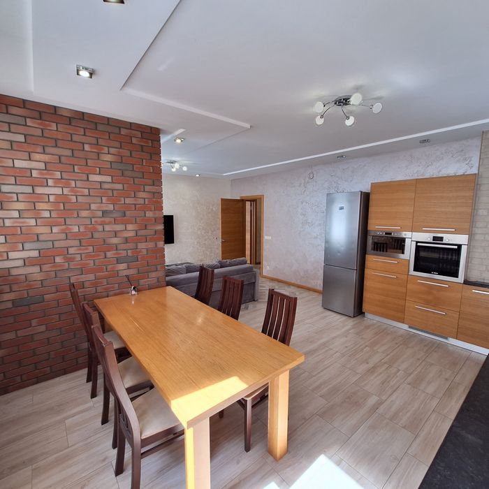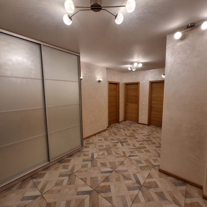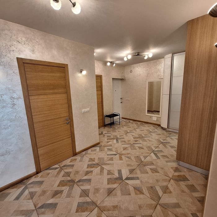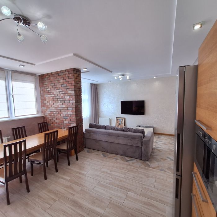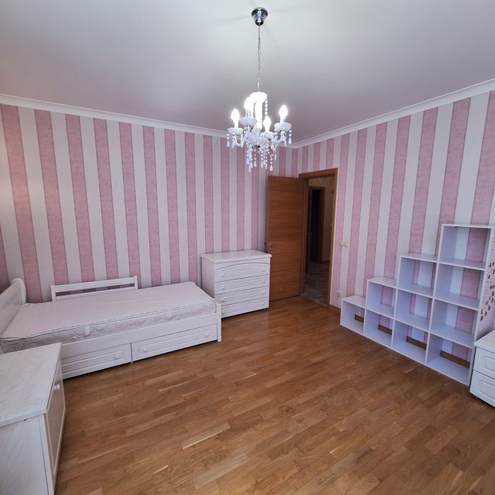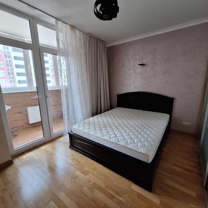 Чиста квартира, спальня з балконом (двоспальне ліжко), дитяча спальня ( 2 кроваті по 1,8м довжина), вітальня з'єднана з кухнею, великий корідор, 2 с/у, душова кабіна.