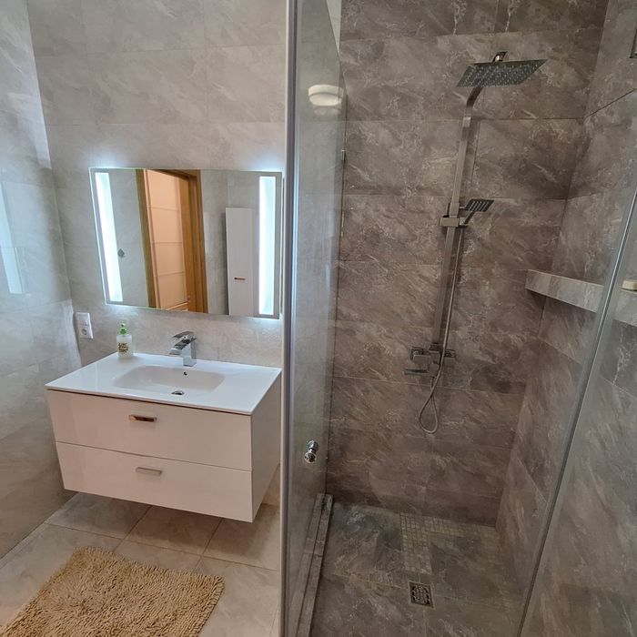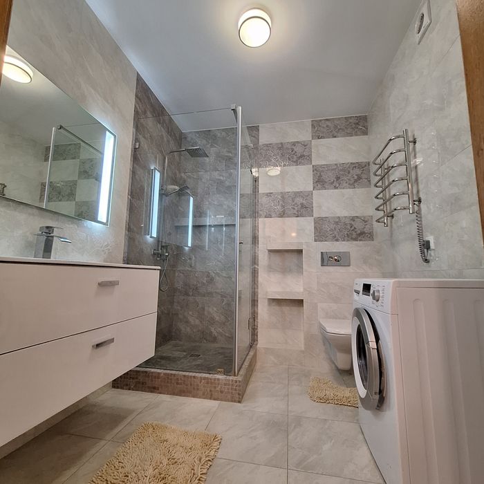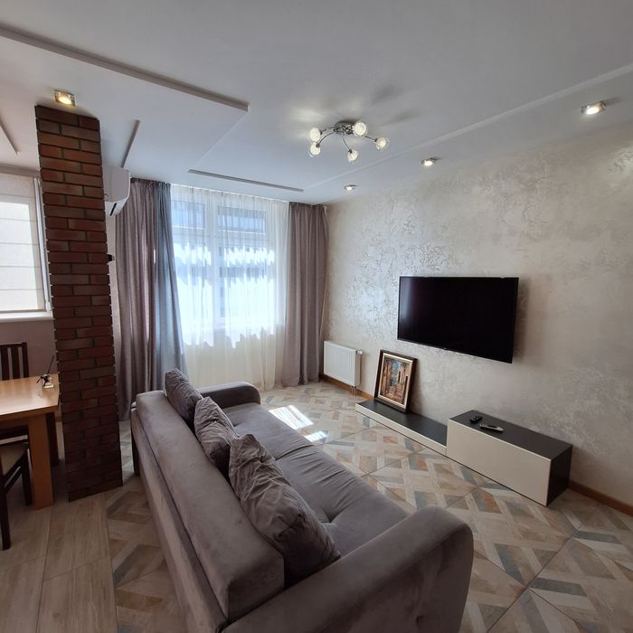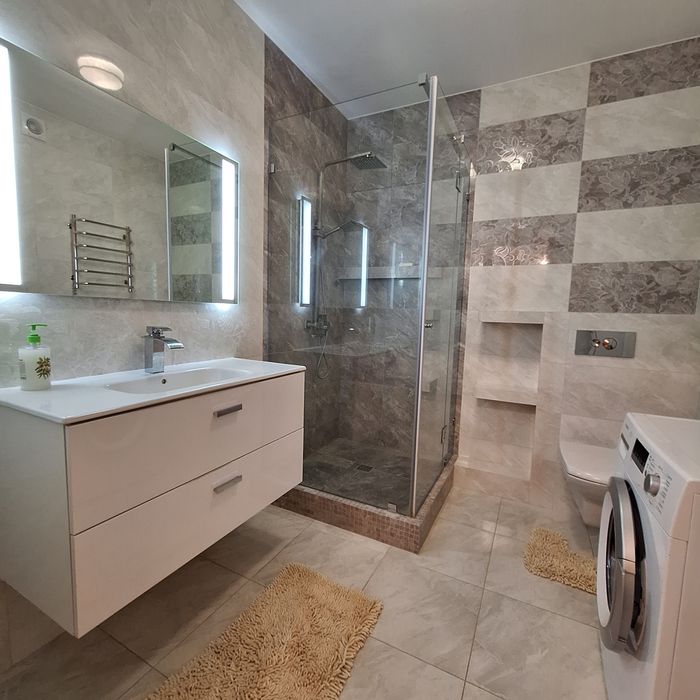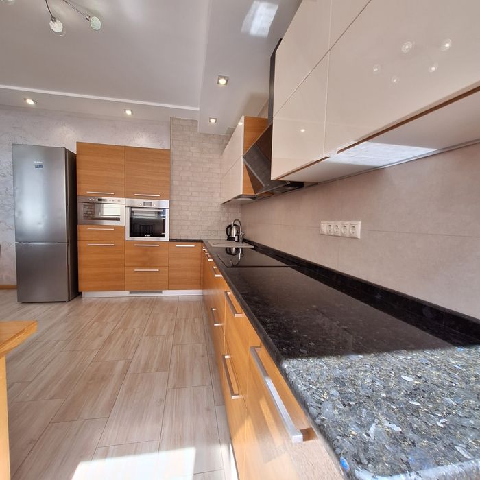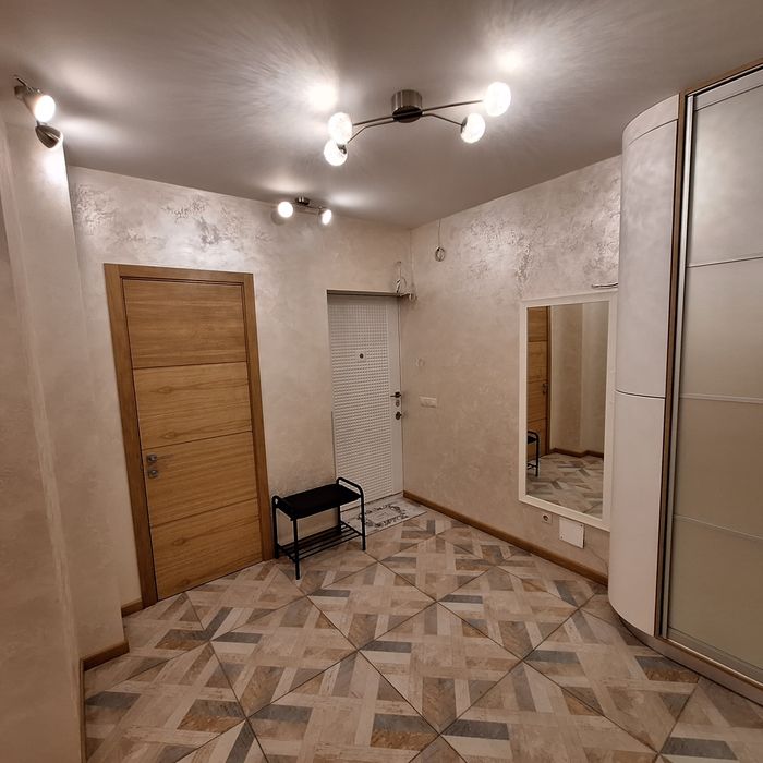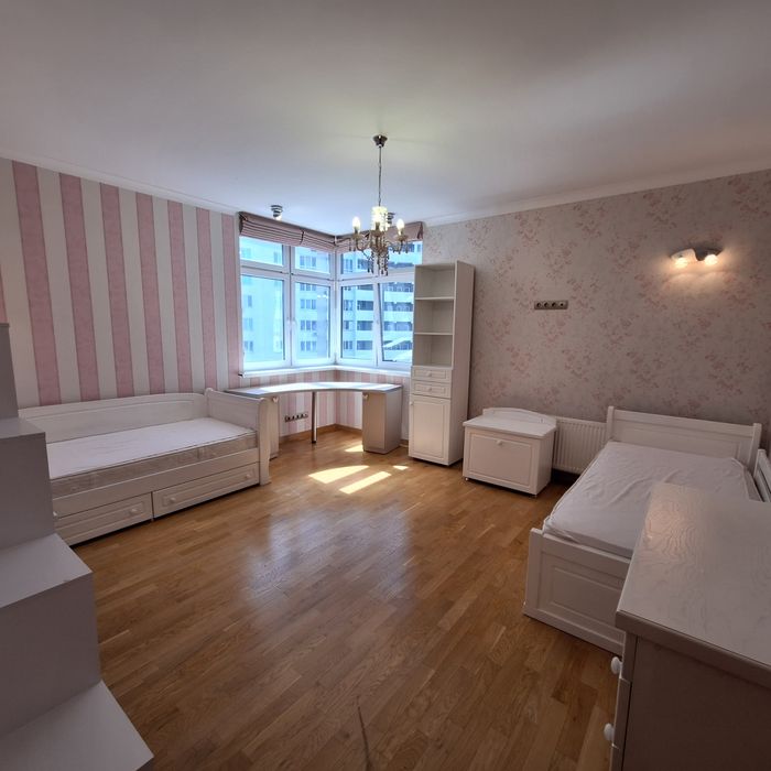 Чиста квартира, спальня з балконом (двоспальне ліжко), дитяча спальня ( 2 кроваті по 1,8м довжина), вітальня з'єднана з кухнею, великий корідор, 2 с/у, душова кабіна.