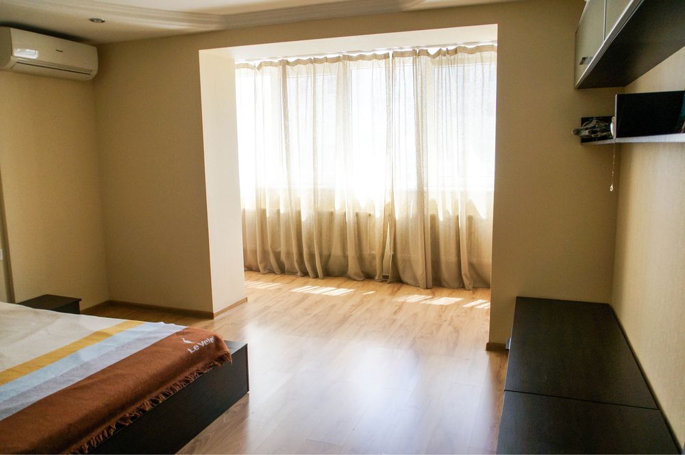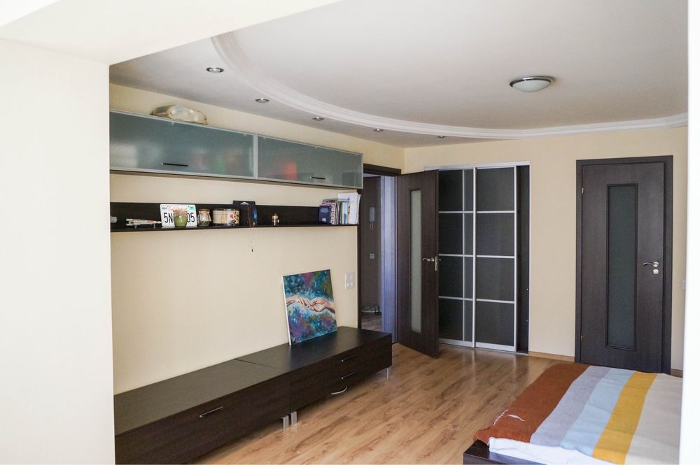 Большая комната и кухня, в квартире есть все необходимые, два сан узла, новая душевая кабина, гардеробная, кондиционер, шторы блэкаут для вашего хорошего сна, телевизор, микроволновая печь, полностью новая двуспальная кровать .