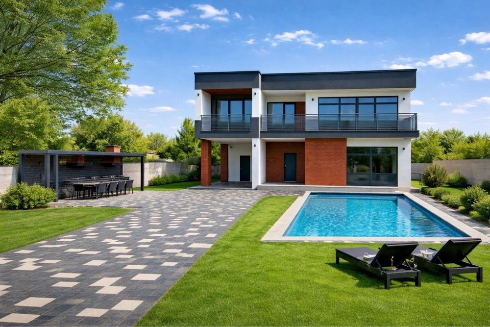 Будинок має 227 m2 загальноі площі, житлова 127!!! Кухня-вітальня 53 m2!!! Вихід на камін!!!