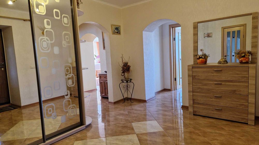 Загальна площа 200 кв. м включає три просторі спальні та вітальню площею 33 кв. м.
