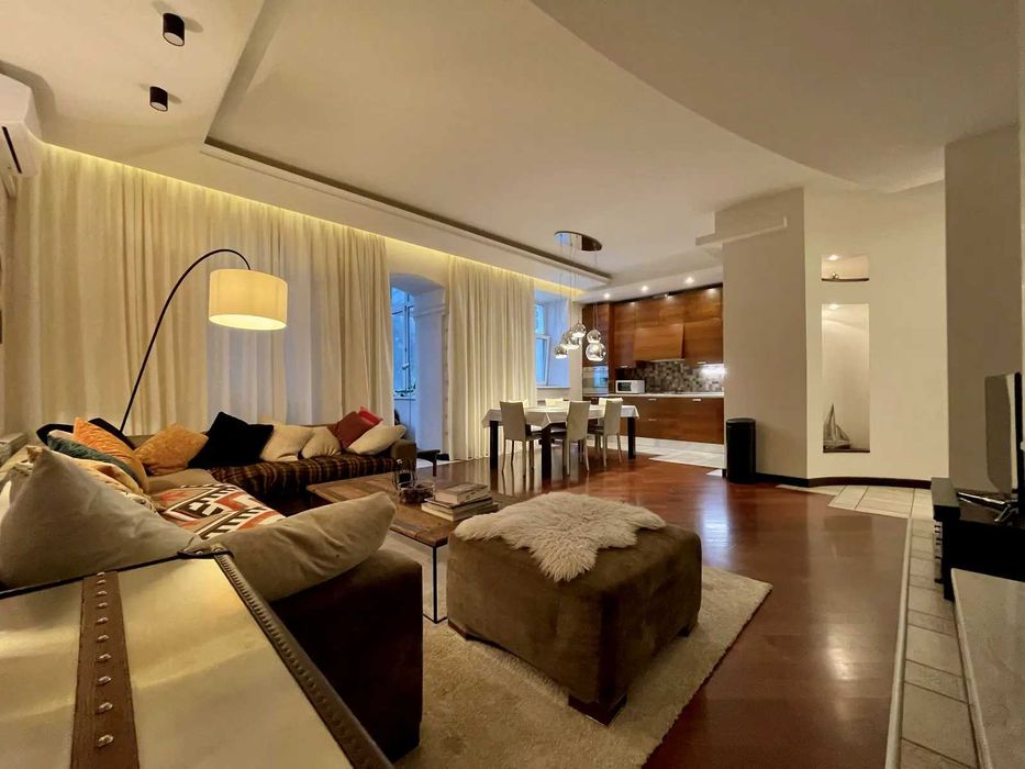 Оренда сучасної квартири з трьома окремими кімнатами, є дві ванні кімнати, кухня-вітальня з каміном, що діє, ремонт зроблений в світлих тонах, є вся техніка, підлога з підігрівом. 4-х кімнатна , 150 кв.м, поверх 2 з 4 поверхів