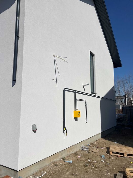 Комунікації – газифікація з лічильниками на кожному будинку, електрика 10 КВт на будинок, водопостачання – свердловина 64 метри, водовідведення – септики (3 колодязі D 2 метри з додатковим дренажем – відкачування – раз на рік), дощова каналізація, інтернет