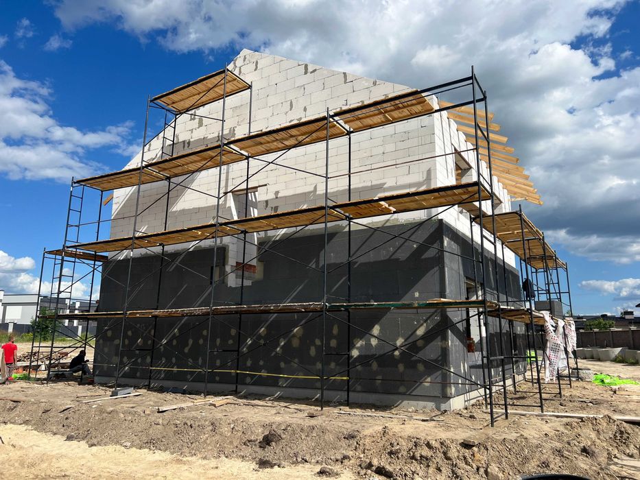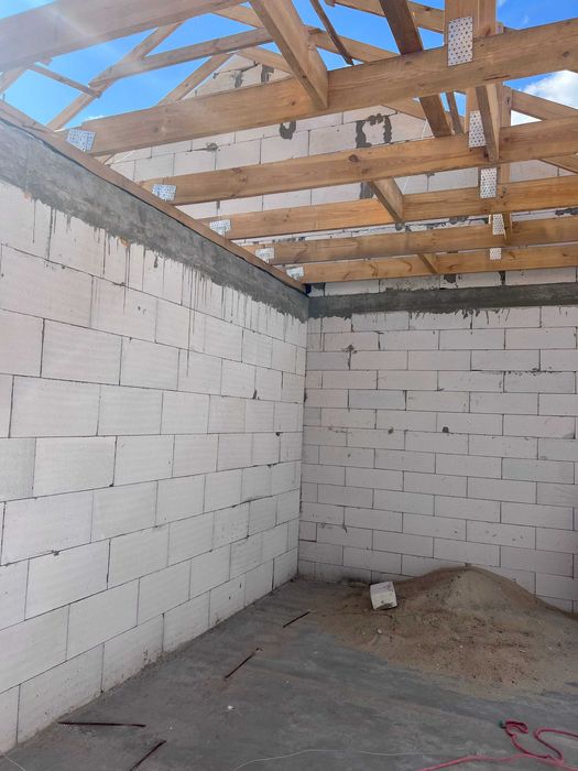 Конструкції: стіни – газоблок D600 300 мм, утеплювач 100 мм; перекриття 1 поверху – пустотні з/б плити 220 мм; перекриття 2 поверху – дерев’яні балки з утеплювачем 200 мм; покрівля - металочерепиця
