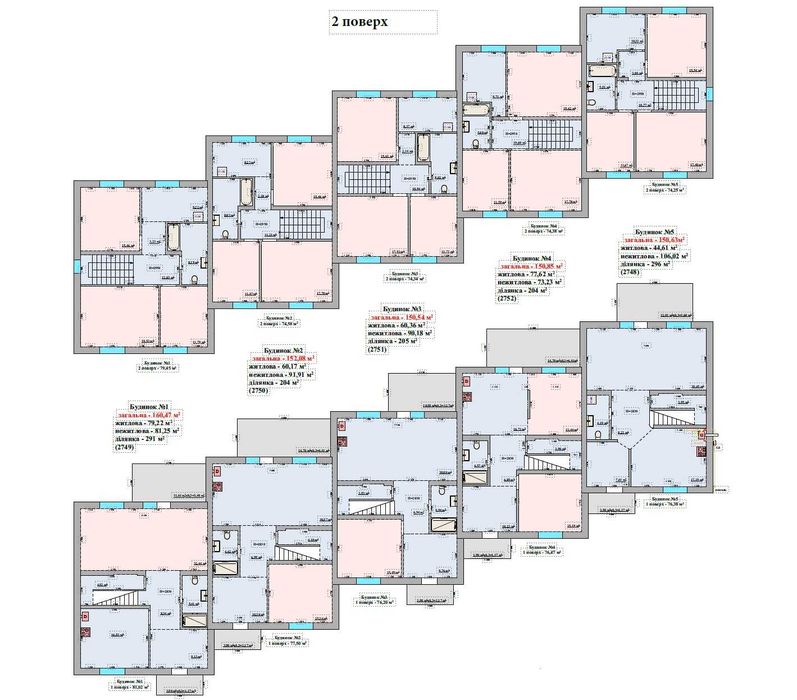 Комплекс – 5 двоповерхових будинків