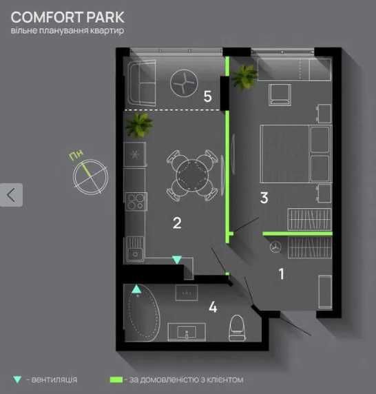 1-кімнатна в ЖК Comfort Park + дизайн-проєкт у подарунок; Світла та простора квартира площею 45 м² на 11 поверсі з 13 з приємним видом у двір.
