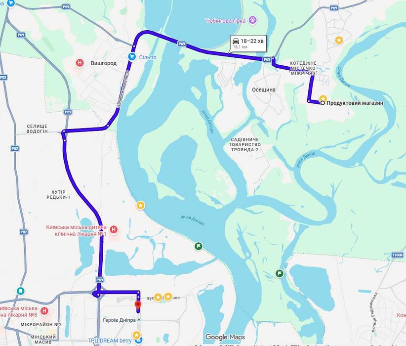 - до набережної Київського моря 3 км, до Десни 900 м.