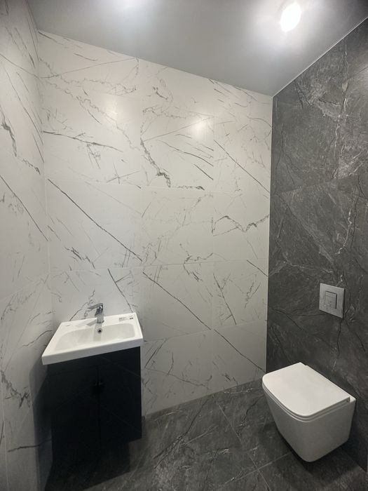•Встановлена ванна, інсталяції, підвісні унітази, умивальники