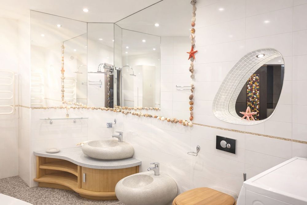 Сучасний санвузол з ванною та пральною машиною