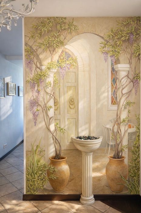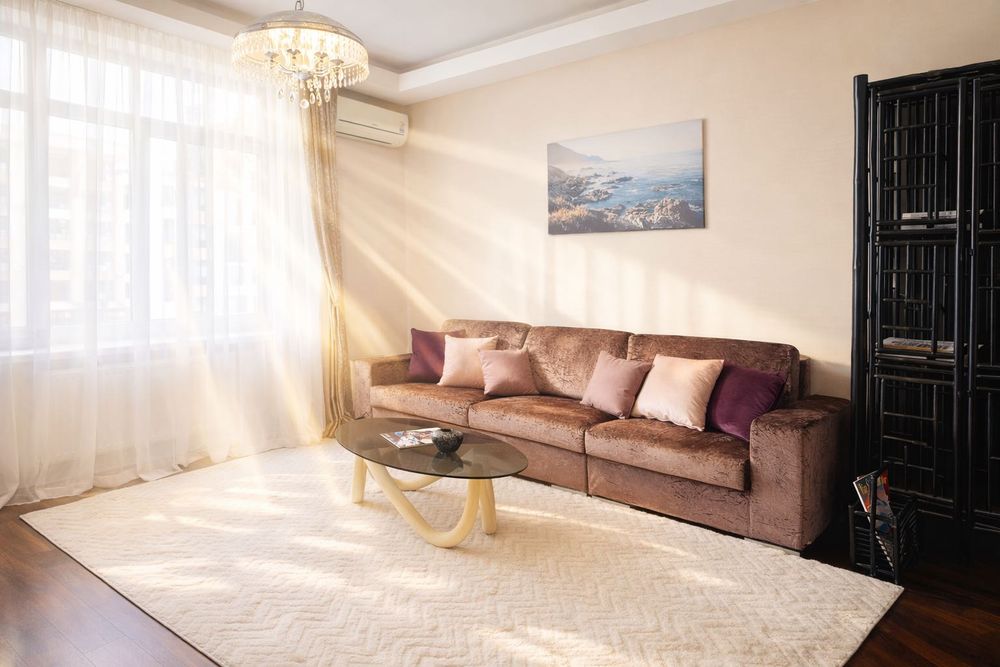 55 м² продуманого дизайнерського простору з елементами, виконаними на замовлення. Висота стелі 3 м. Родзинка квартири — авторський розпис у передпокої в стилі італійського дворика, що створює wow-ефект з перших секунд.