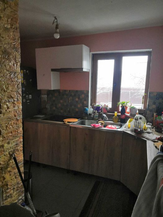 Продам будинок 150 м2 Скнилів; Продам будинок в с.Скнилів, 2 поверхи, високий цоколь, 4 окремі кімнати, два санвузла, опалення : ектрокотел з батареями та теплою підлогою та чавунна грубка-камін на дровах з розведенням теплих рукавів в кожну кімнату, своя вода зі скважини 27 м, газ зараз проводимо, робимо документацію і проект, в червні вже буде газ заведений в будинок, земля 5 сотиків. Будинок частково з цегли, частково сендвіч- панелі, утеплені стіни та дах, є підвал. Підлога на 1 поверсі з підігрівом, залишаються кухонні меблі, індукційна плита, бойлер. Будинок окремо стоячий, вулиця освячується ліхтарями, є 2 вигрібні ями. Продаю в зв' язку з від' їздом. Всі документи готові, продаж від власниці.