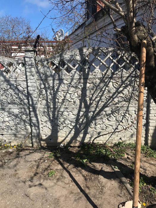 Есть небольшой огород (около сотки) с беседкой и забором, сарай, летняя кухня с погребом и большой гараж.