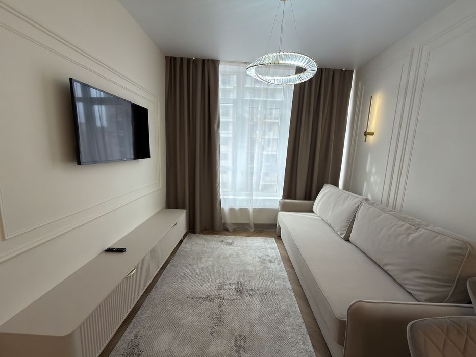 Приморський; Перша сдача! Квартира євродвушка з розкішним ремонтом ЖК Атмосфера; Перша сдача! Розкішна 1- кімнатна велика квартира - євродвушка в ЖК Атмосфера (Аркадія)після ремонту ( кухня-студія зі спальним місцем, спальня, ванна кімната суцільна з туалетом, окрема гардеробна. Близько до моря. Квартира з дизайнерським, дорогим ремонтом, укомплектована новою сучасною технікою та меблями, які зроблять проживання максимально комфортним. Посуд весь також новий в наявності в квартирі. Без виселення на літо